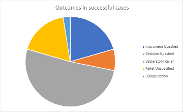 This problem may be exacerbated by a lack of transparency in the practice of granting relief. The data shows that in approximately a quarter of successful judgments, the court either concluded by inviting the parties to make submissions on relief (without including the final order), or without any reference to remedies at all. Other studies have confirmed that the nature of relief granted, if any, in the event of a successful challenge could not be discerned in a number of cases. “Transparency and consistency in judicial reasoning about remedies” could help ensure that individuals are not deterred from demanding the form of relief most effective in remedying the suffered breach of right due to a lack of consistent precedent on the granting of that remedy.